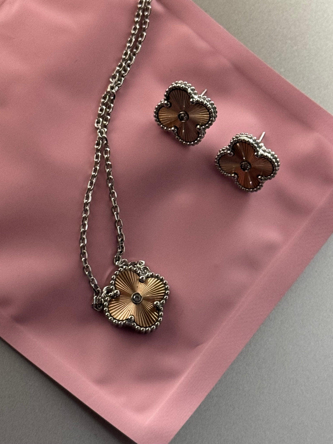 Made in stainless steel chain length 45cm includes a pair of studs and a necklace ...
