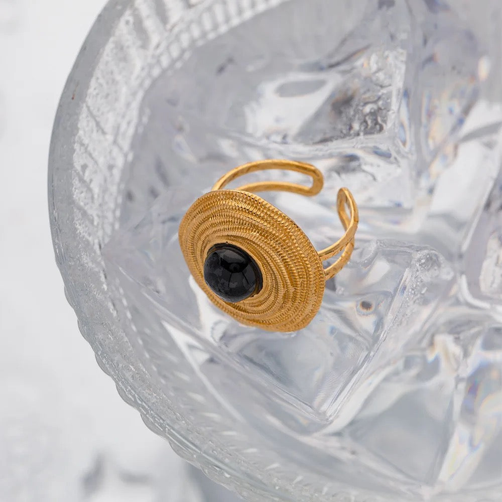 Black Agate Circular Ring