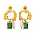 Emerald Pearl Amber Hoops
