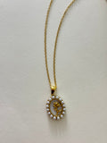Pearly Flower Oval Necklace