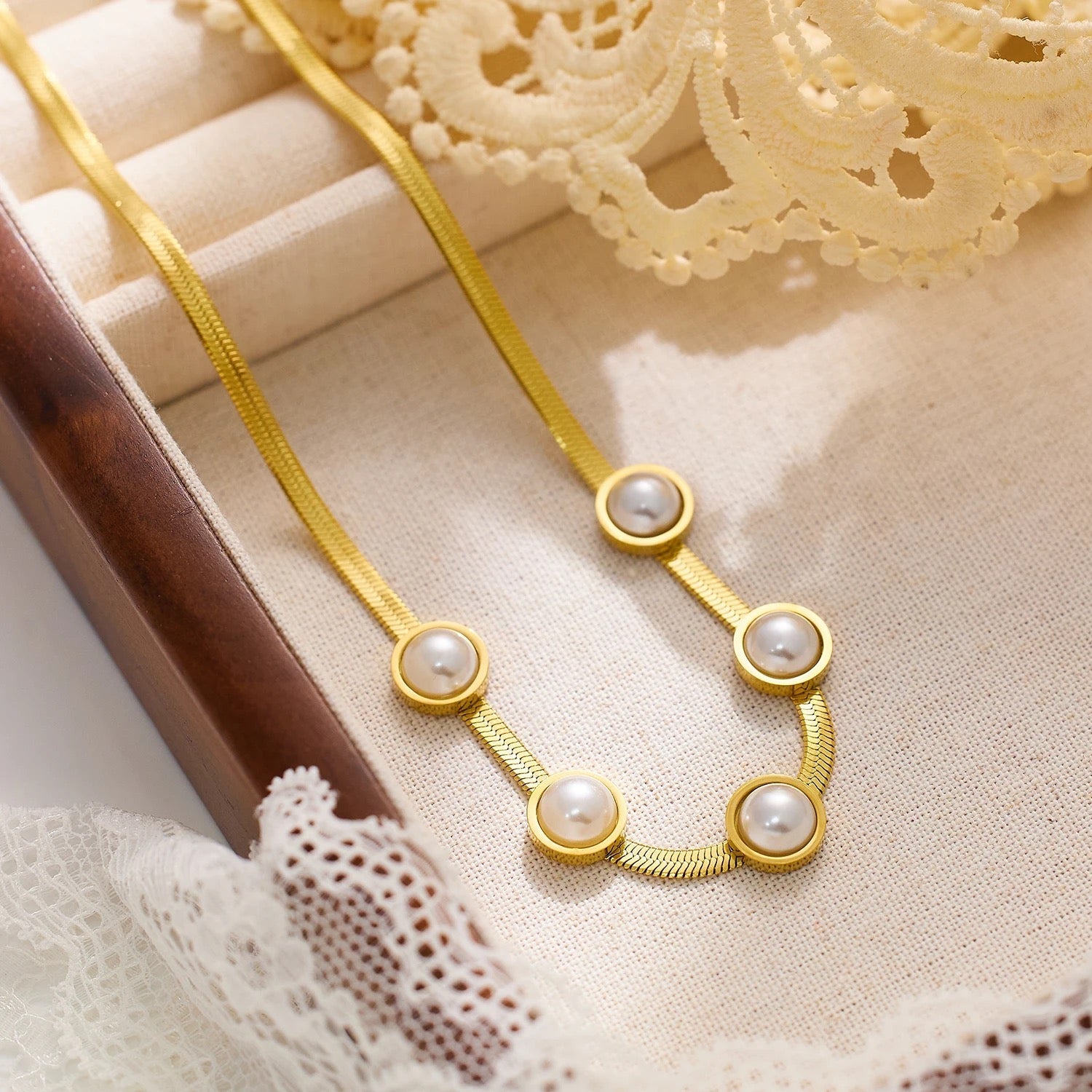 Round Pearl Snake Chain Necklace